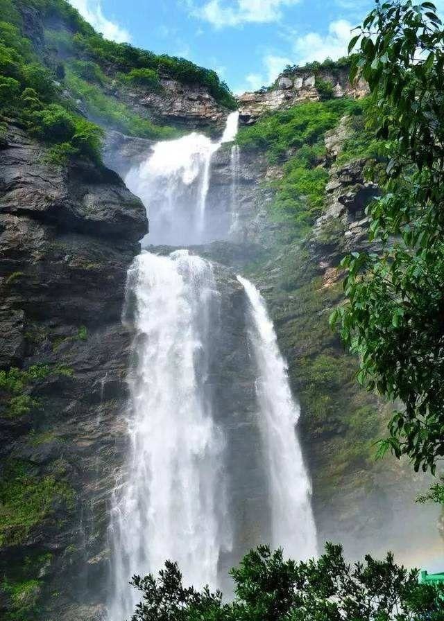 大口瀑布是庐山瀑布群中的重要组成部分,瀑布从高处飞泻而下,气势磅礴,水势汹涌,在阳光的照耀下,有时还能看到绚丽的彩虹横跨在瀑布之上,景色十分迷人。瀑布周边植被丰富,绿树成荫,为整个景观增添了几分清幽与秀丽。