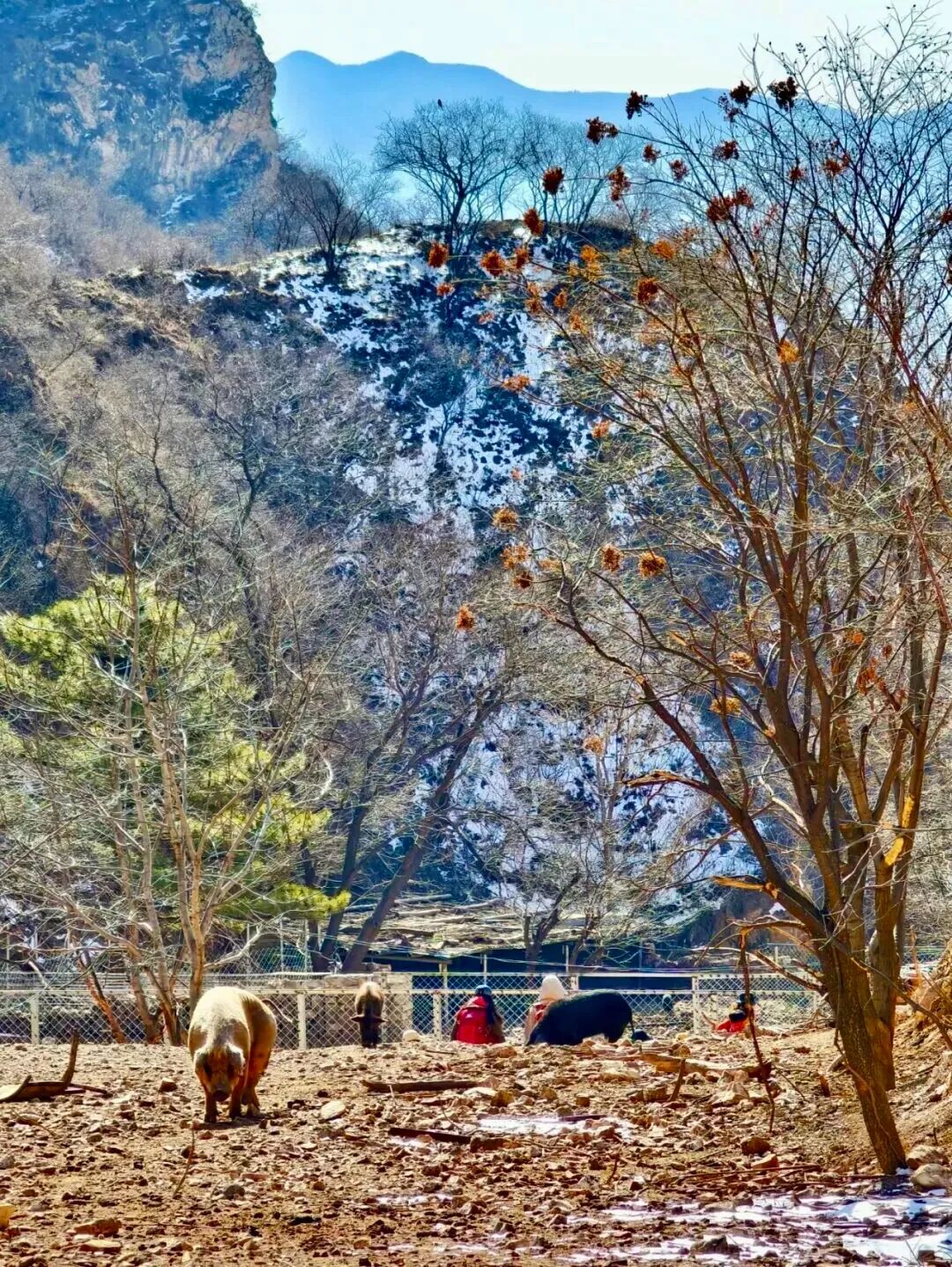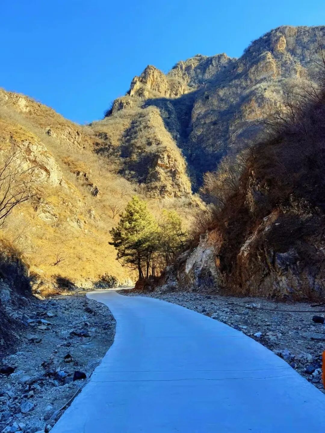 小路延山谷缓缓攀升,先经过一片树林,之后翻过一个小垭口,后面的路程就大都是平缓略有下降的山路,蜿蜒曲折穿行在山谷之中,远远便能看见白瀑寺,游览白瀑寺后,我们前往终点集合。