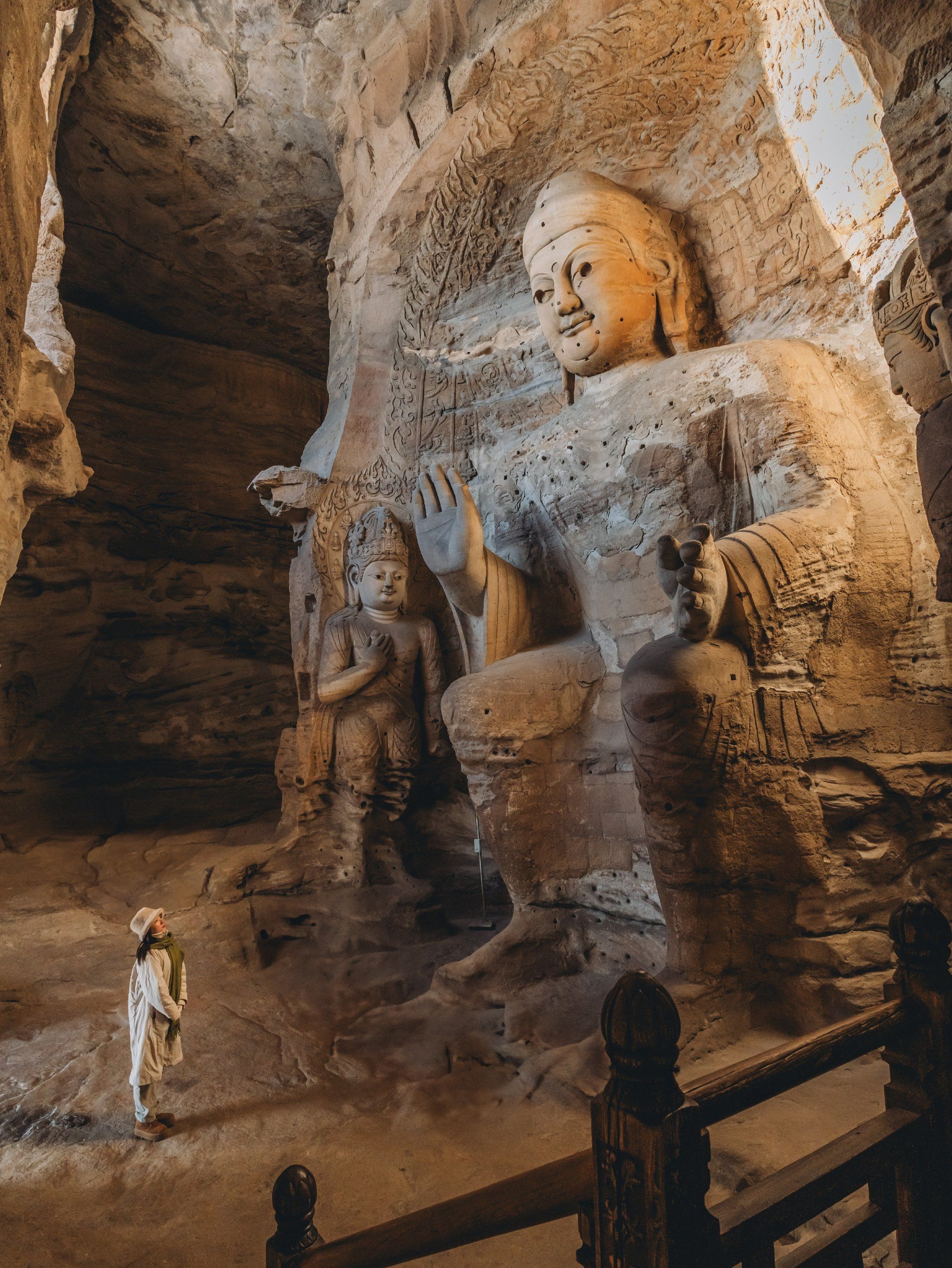 云冈石窟依山而凿,东西绵延约一公里,气势恢弘,内容丰富。现存主要洞窟45个,大小窟龛252个,造像5万1千余尊,代表了公元5至6世纪时中国杰出的佛教石窟艺术。其中的昙曜五窟,布局设计严谨统一,是中国佛教艺术第一个时期的经典杰作。