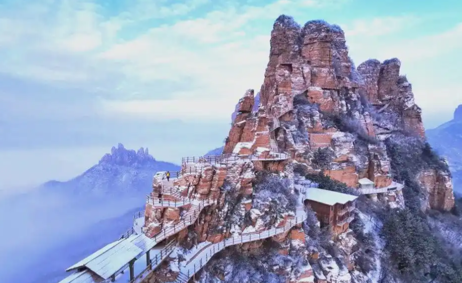 东太行高山栈道天境瀑布北高峰全景游:游览路线:游客中心-索道观光-南天门-四方桥-悬崖电梯-中天门-云际栈道-高山天瀑-天镜湖-天脊长城-九重天-北高峰-太行一柱-云端栈道-红象台-小羊山-索道下山-游客中心,我们深度体验媲美美国科罗拉多大峡谷的太行丹霞地貌风光,在云际栈道感受虚无缥缈的云海仙境,在云端漫步,逍遥自在旅行,心旷神怡。还可到国内最震撼最浪漫的东太行高山天瀑前“山盟海誓”,与TA或TA们鉴情,相伴一生,漫步云端!