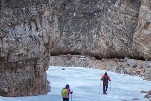 往返路线大概12公里,300爬升,下降300。很休闲的一个路线。没有什么难度,也适合徒步小白,也适合家庭出游。但一定要带上冰爪,河谷都是冰,路很滑,可以带上滑板去滑冰玩,体验峡谷冰川惊险刺激的冰上乐趣。