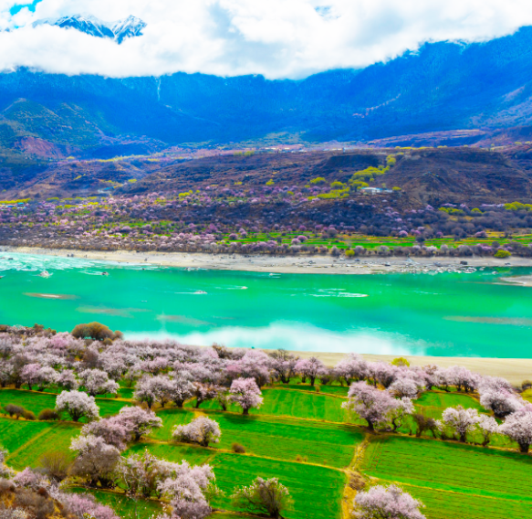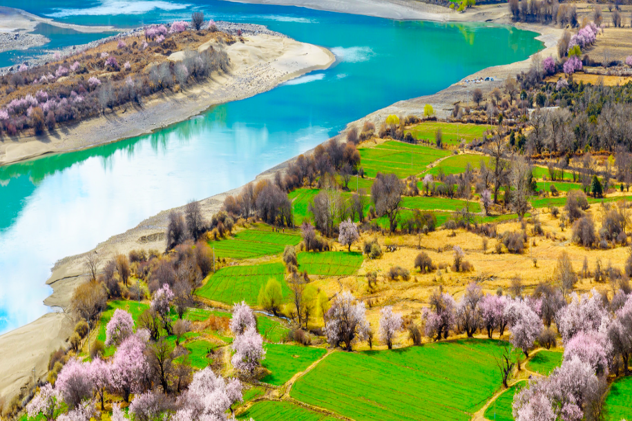林芝的雅鲁藏布江,从喜马拉雅的冰川一路向东流过林芝,横贯西藏。在当地藏民心里,它是地上的天河,也是西藏文明的摇篮。每到春天,这里遍野的桃花依江盛放,如诗如画。