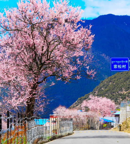 索松村是派镇下辖的一个村,而派镇位于 雅鲁藏布江 大峡谷的入口处。这里是久负盛名的驴友圣地,也是通往 墨脱 的必经之路。这里最有名气的还是桃花林,由于这里的特殊地理环境,四面环山空气湿润温度适宜,每年3~4月这里都有数不清的桃花盛开。