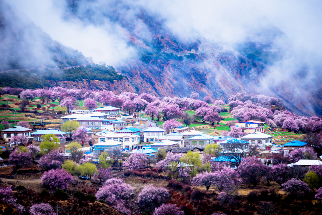 在林芝赏花,便不能绕过波密。在波密只要有人家的地方,房前屋后都会种满桃花树。每到3、4月份,这里都呈现出芳草鲜美、落英缤纷,繁花似锦如醉霞绯云。